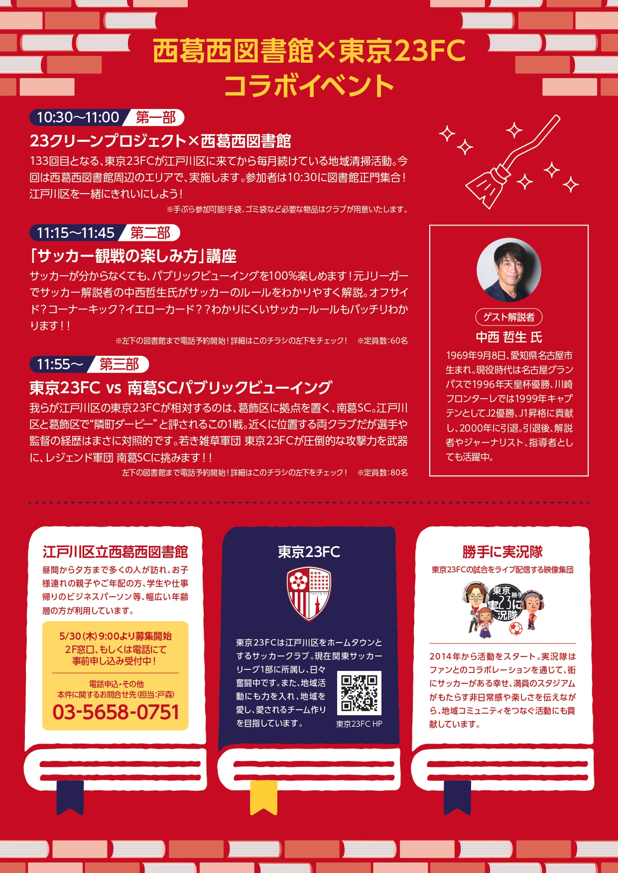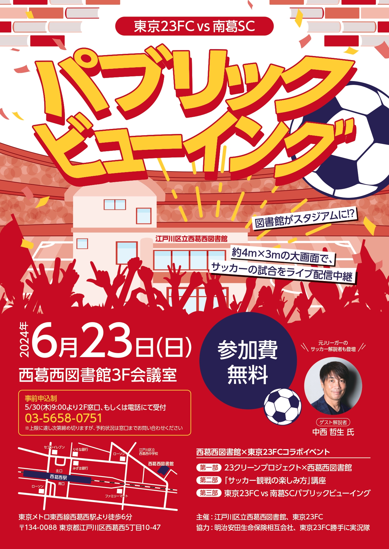 【コラボ企画】西葛西図書館×東京23FC パブリックビューイング 開催のお知らせ