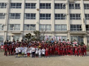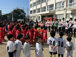 2/21(土)13:00~15:00 江戸川区立上一色南小学校校庭にて、中央レッドスターの園児~小学6年生まで60名と東京23FCの選手14名、スタッフ7名によるサッカー教室を開催し、交流を行いました。